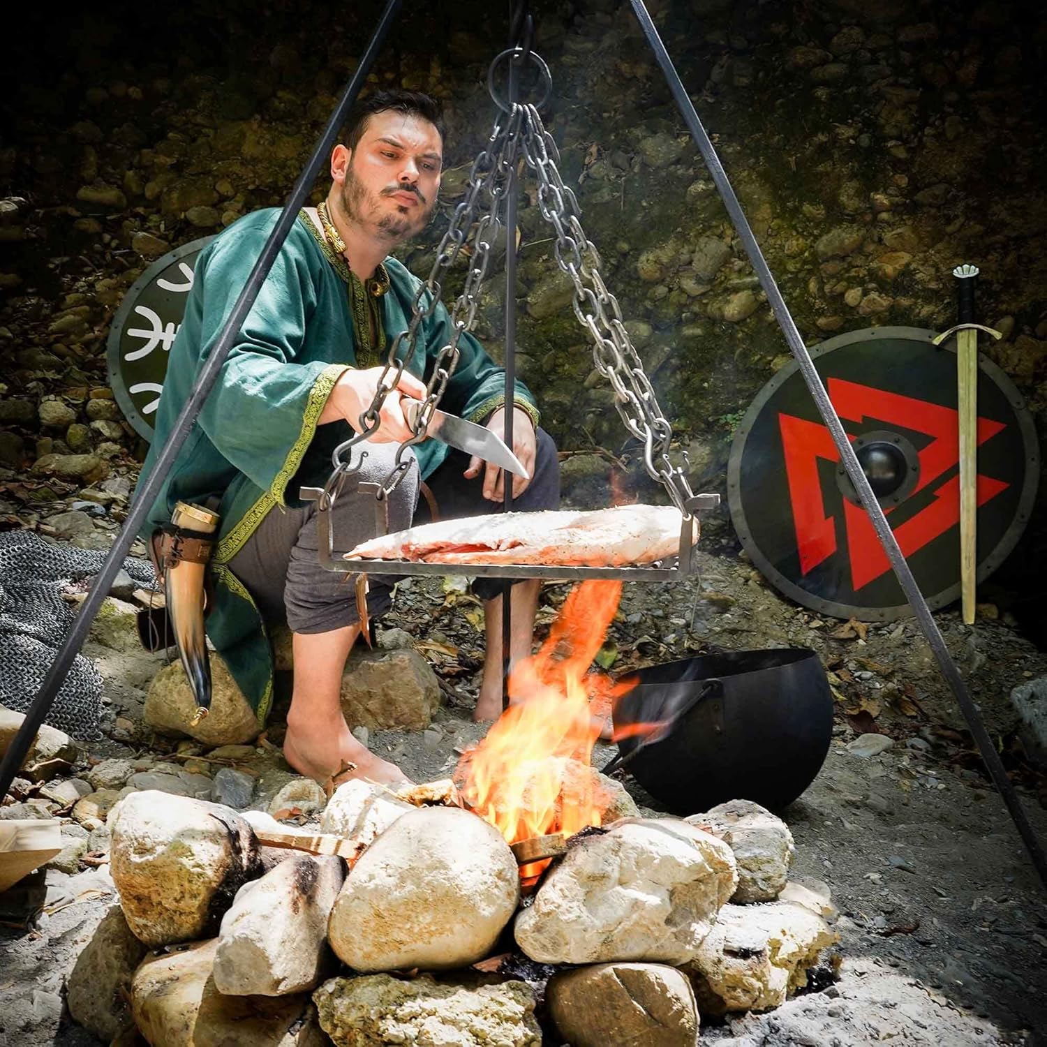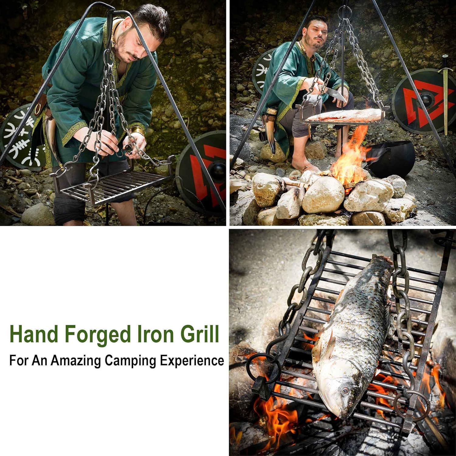 Perfect for camp, faire, or home use, this grill works beautifully with our pot forks, ladles, and other cooking implements