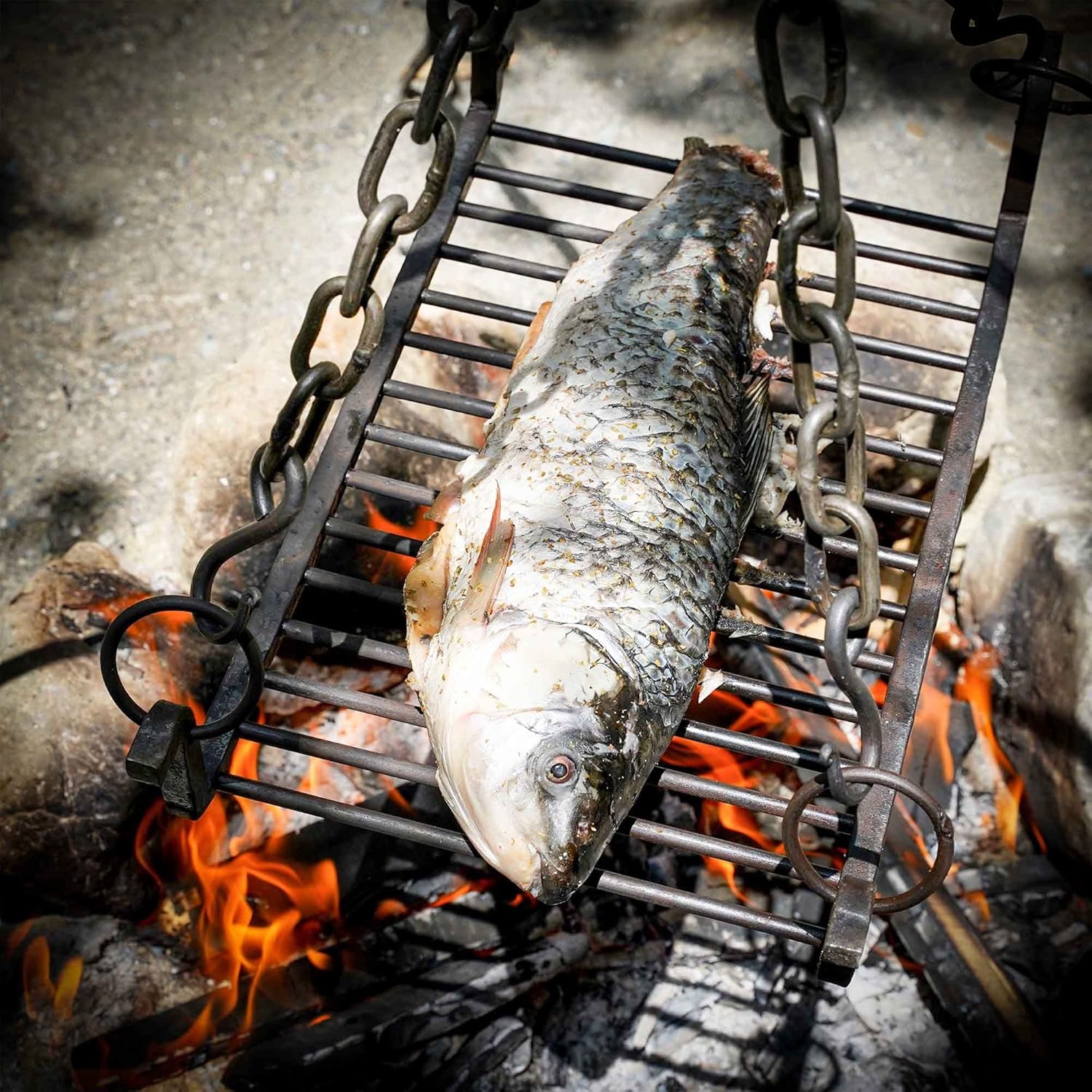 The ultimate small camping grill. Hang it from a tripod (not included) and grill meat, fish, vegetables, or use it as a surface to place small pots or pans on