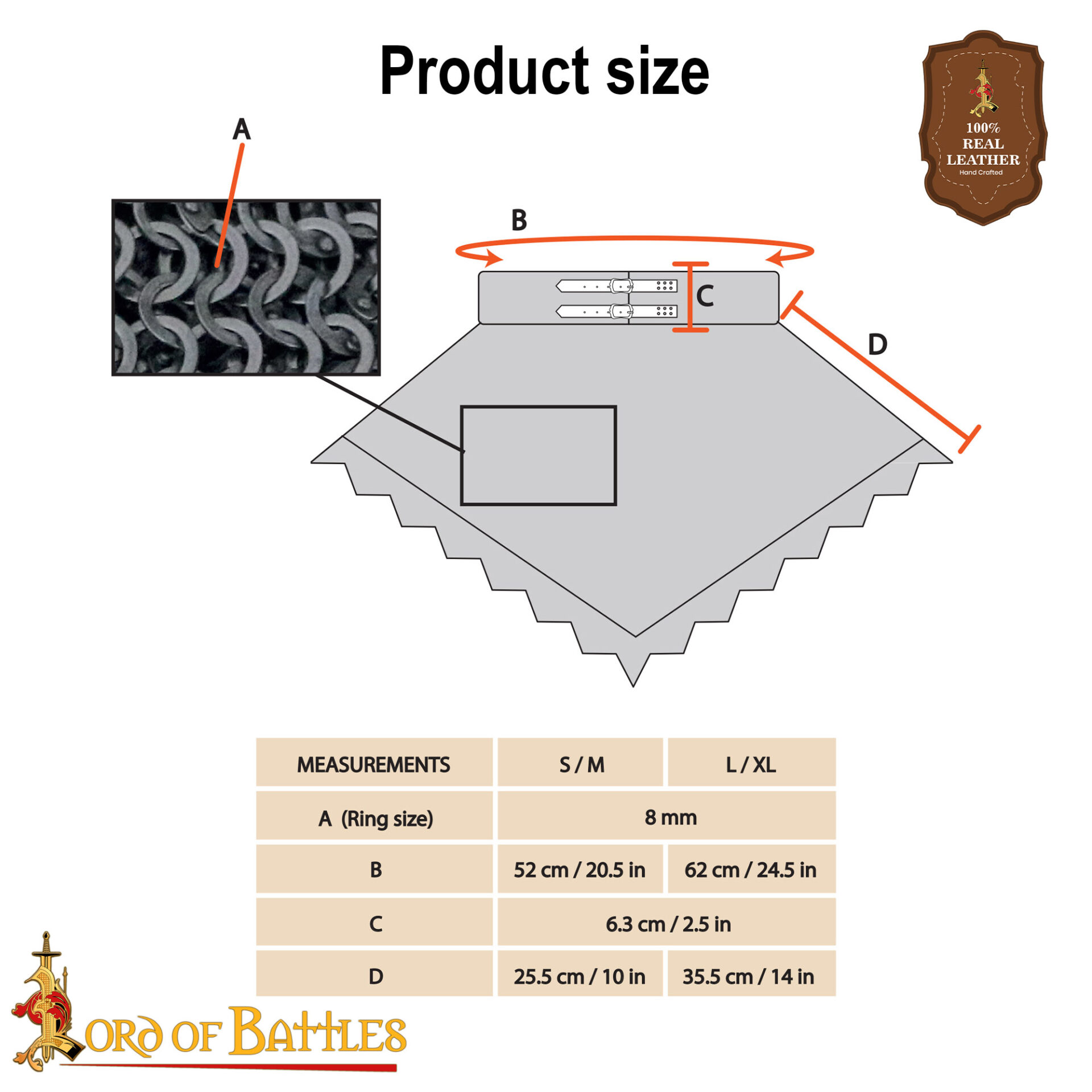 • Authentic Medieval Design – Traditional chainmail standard, providing protection for the throat, neck, and shoulders.