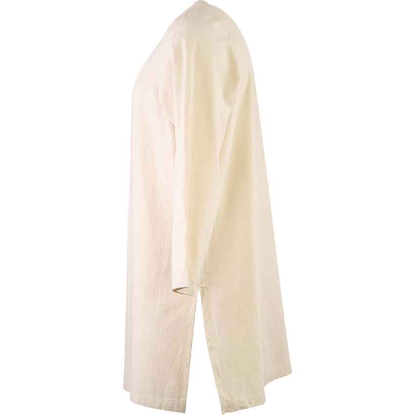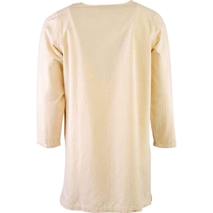 This cotton, natural-coloured undertunic is perfect for any male-presenting Viking outfit. It has long sleeves and a V-cut neckline, and works perfectly as a base layer for building your dream outfit – whether for raiding, for trekking through the wilderness, or for sitting in the meadhall with your boat crew
