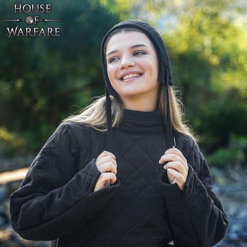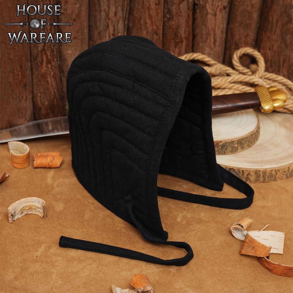 This is more than a costume accessory—it’s a practical armor garment inspired by historical examples. The outer quilted shell adds strength, abrasion resistance, and shape retention, while the inner padded layer delivers true comfort and shock absorption. The dual construction mirrors the function of original medieval arming caps: offering warmth, impact resistance, and prolonged wearability without compromising the traditional look