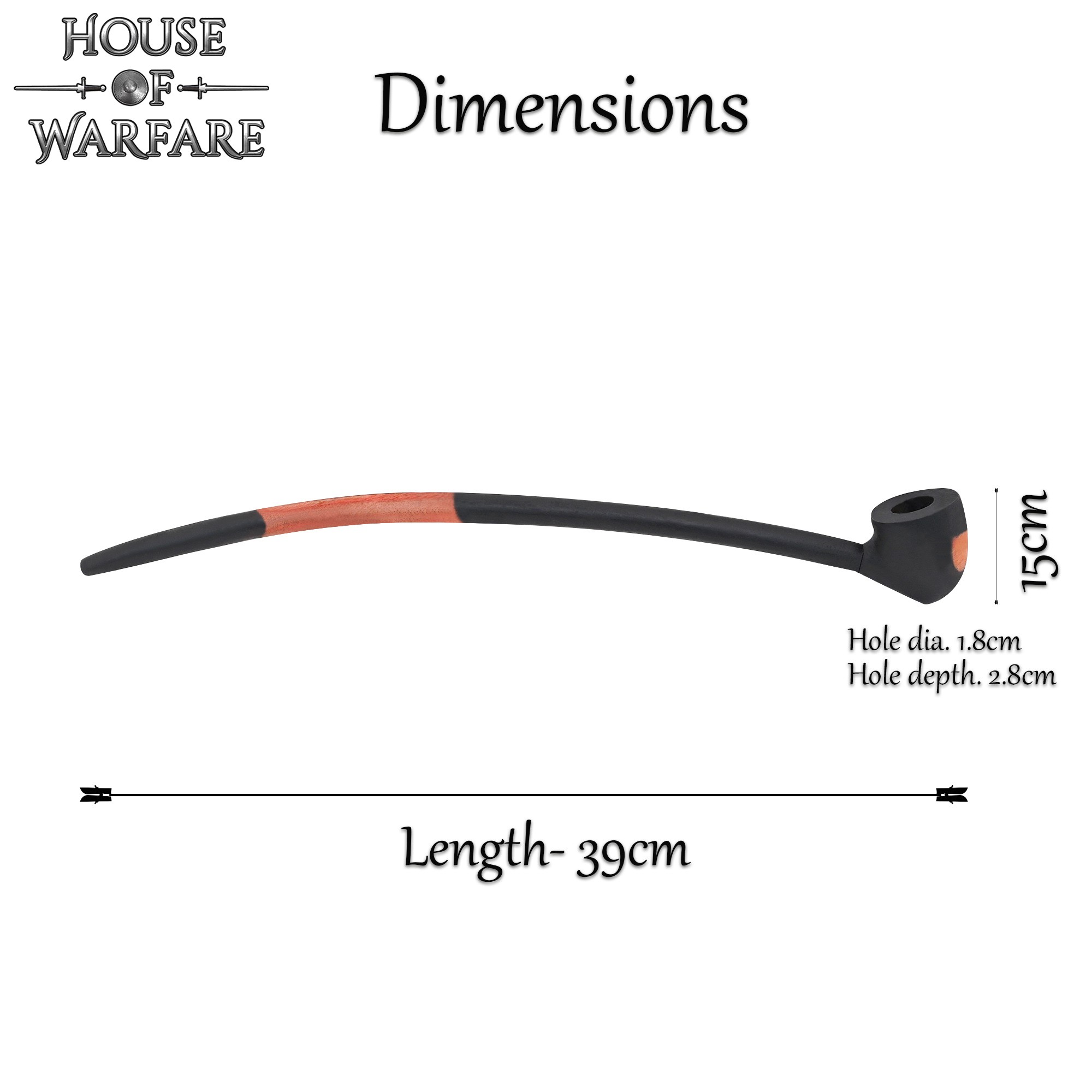 This fully functional wood pipe is stained black with an attractive natural stripe on the stem.  Its impressive 16″ length will adds a dramatic touch to any historical attire